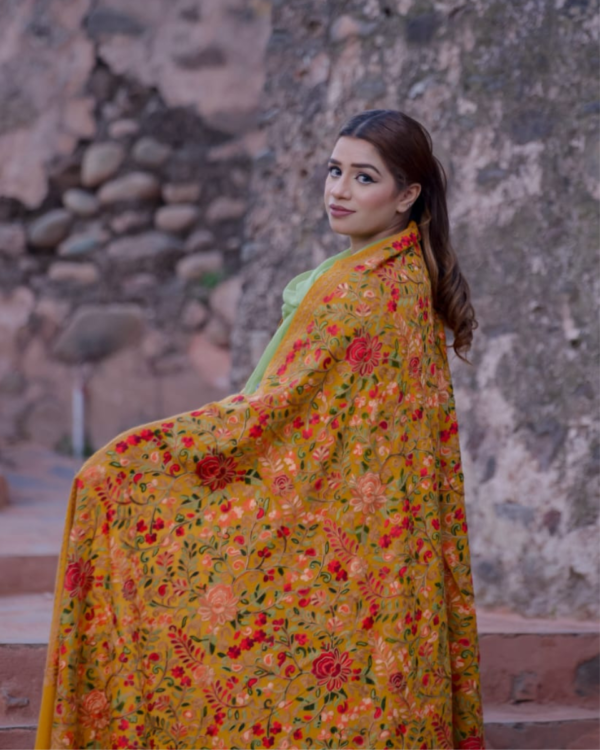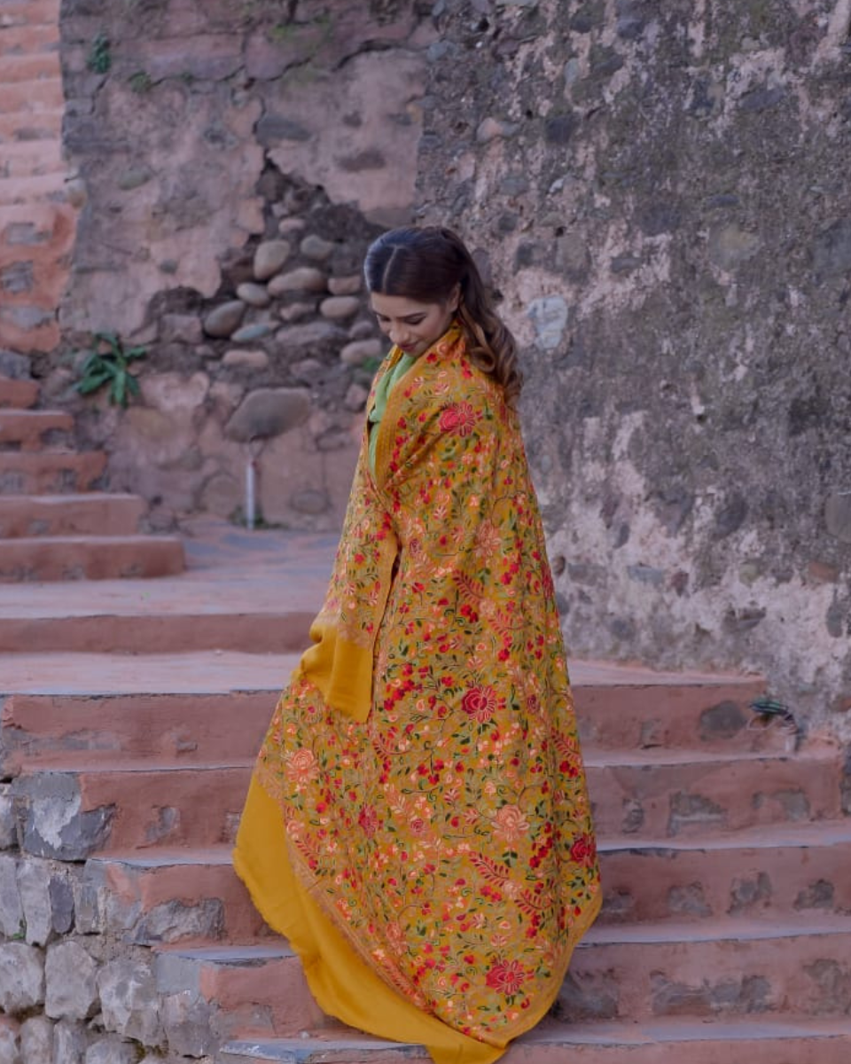 Arri Embroidery: The term “Arri” refers to a specific kind of needlework that is used to create these shawls. It often involves fine silk threads or other delicate materials, which are embroidered onto the woolen fabric in an intricate, shawl for women detailed manner. The embroidery is often done by hand, requiring exceptional skill and craftsmanship.